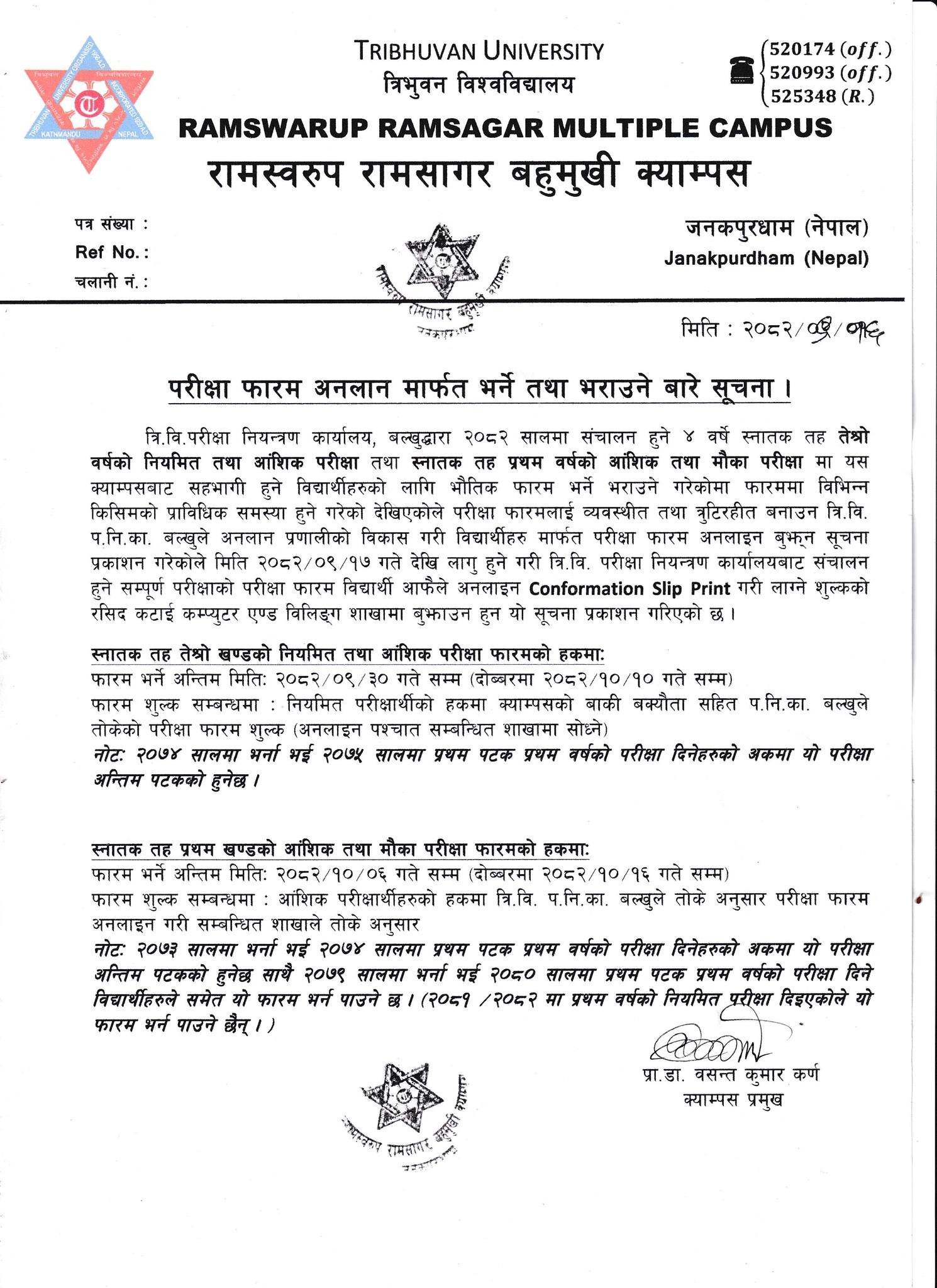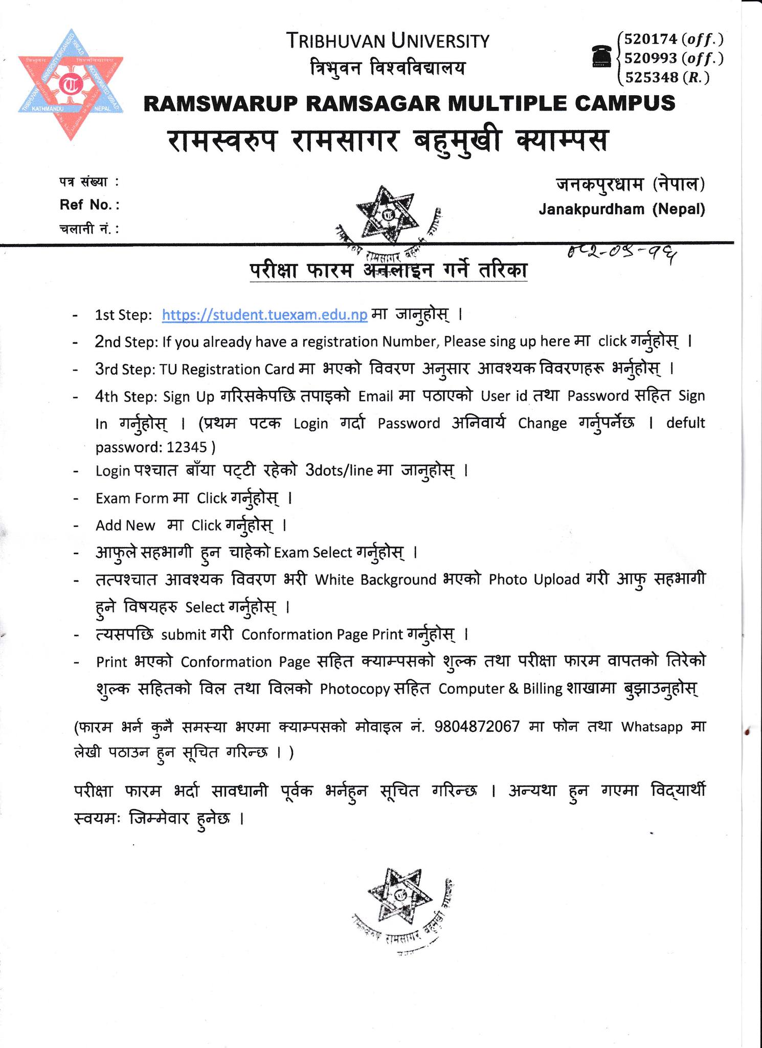 परीक्षा फारम अनलाइन भर्ने तथा भराउने बारे सूचना ।