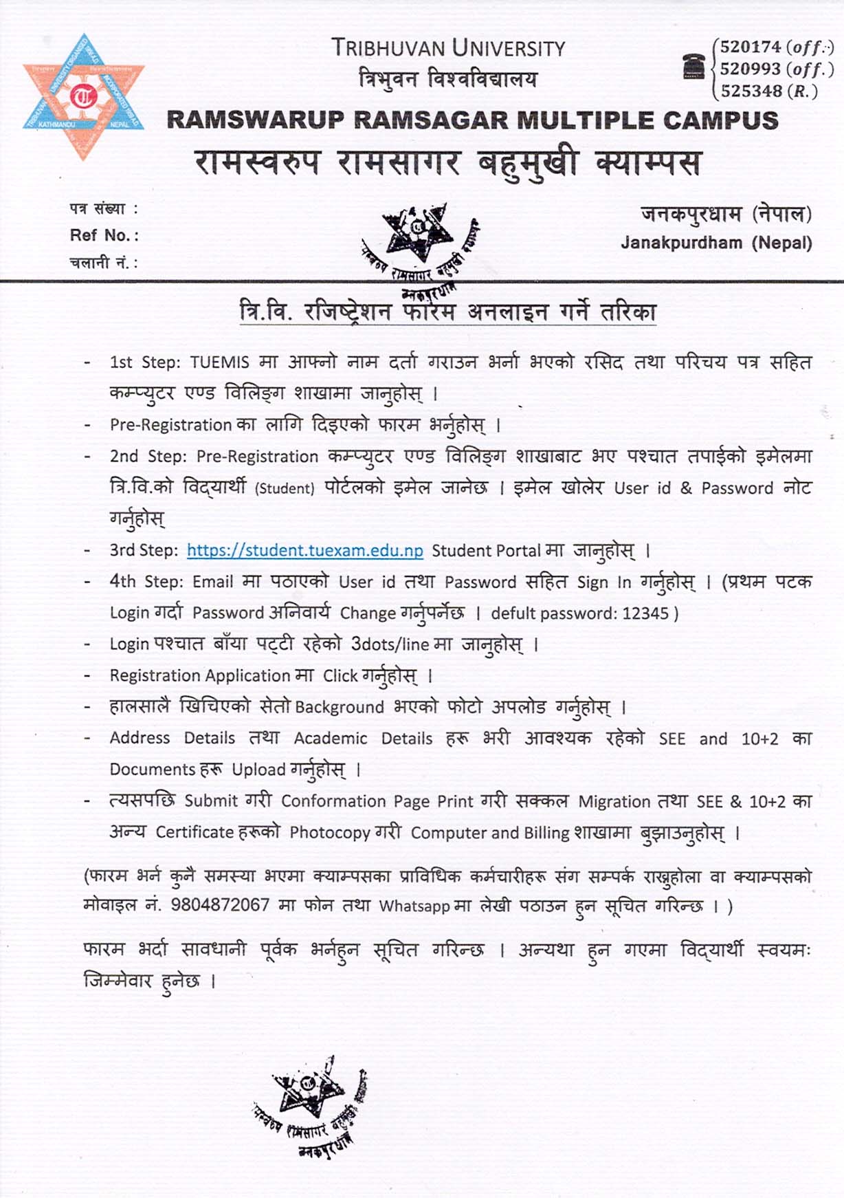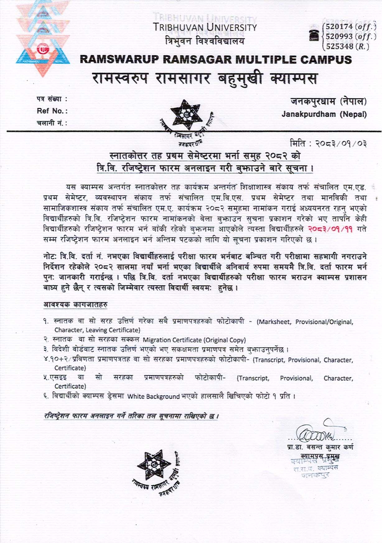 TU Registration Notice for Masters Level Student; Batch: 2082