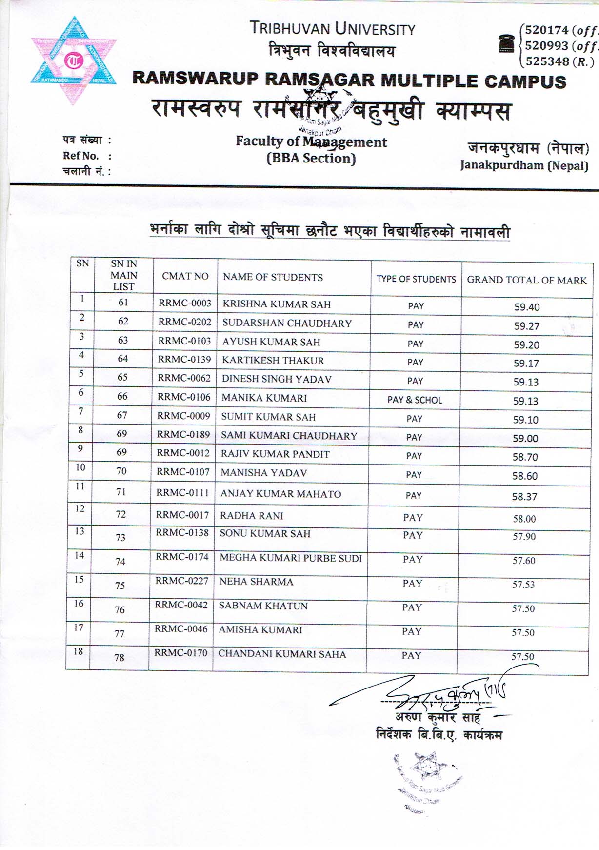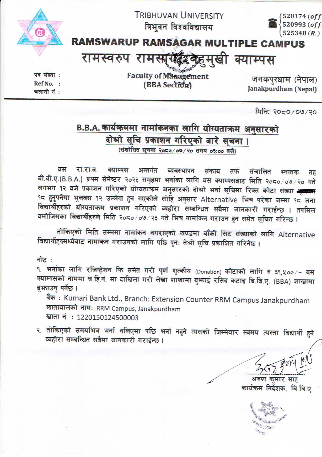 BBA Program 2023 समुहमा भर्नाका लागि Merit List अनुसार १८ जना विद्यार्थीकाे नामांकनका लागि प्रकाशन गरिएकाे दाेश्राे सूची । (संशाेधित 2080/07/20 ३ बजे )