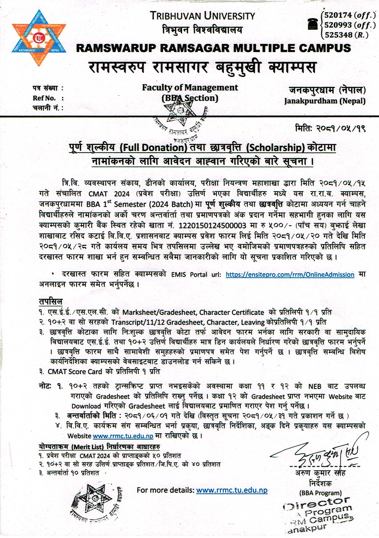 स्नातक तह प्रथम वर्ष २०८२ समुहको परीक्षा फारम सम्बन्धमा