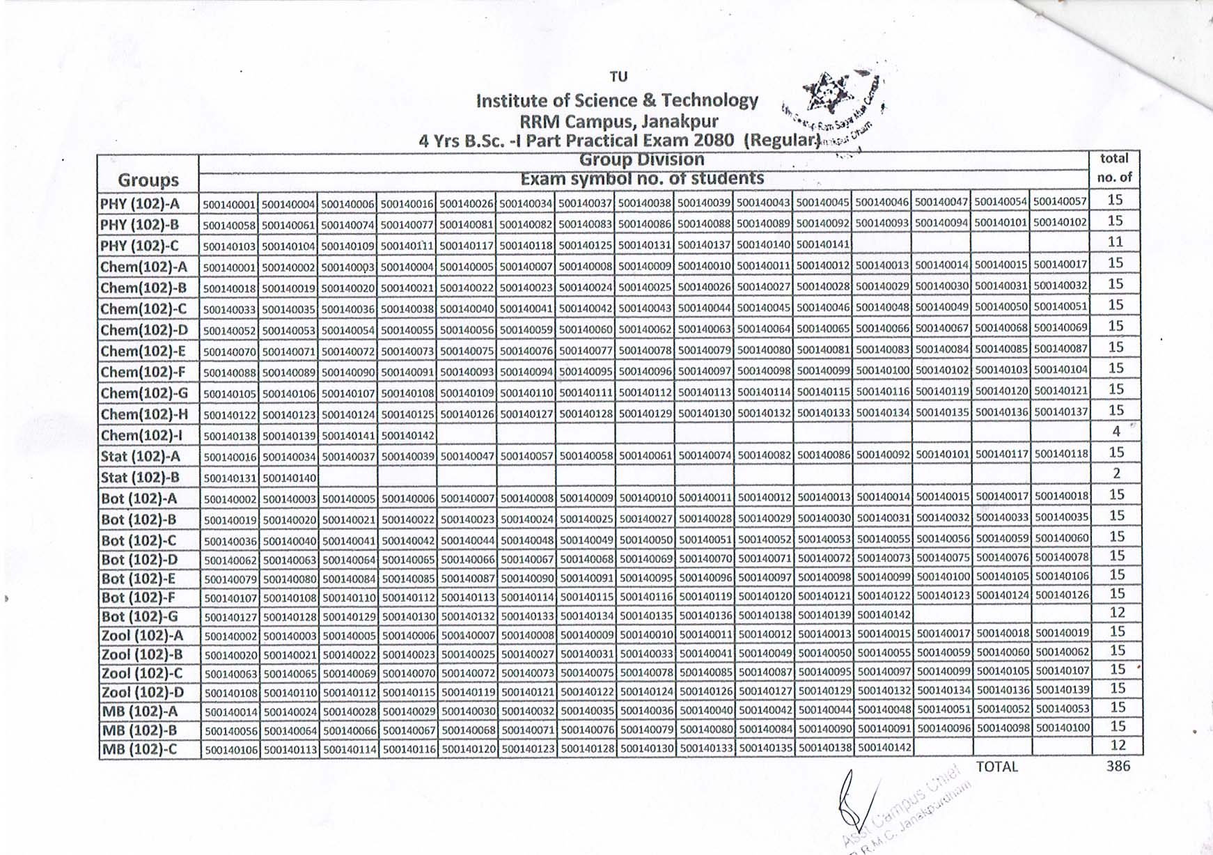 M.Sc. Math- I Semester ; 2082 Batch काे परीक्षा फा...
