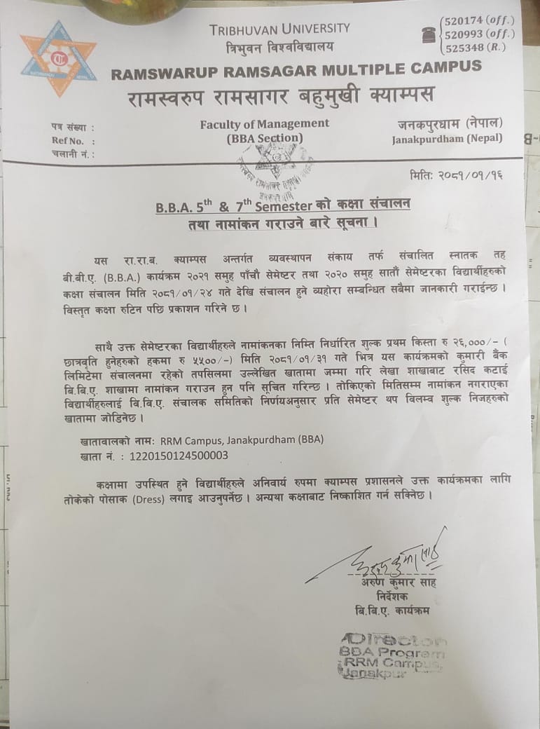 स्नातक तह प्रथम वर्ष २०८२ समुहको परीक्षा फारम सम्ब...