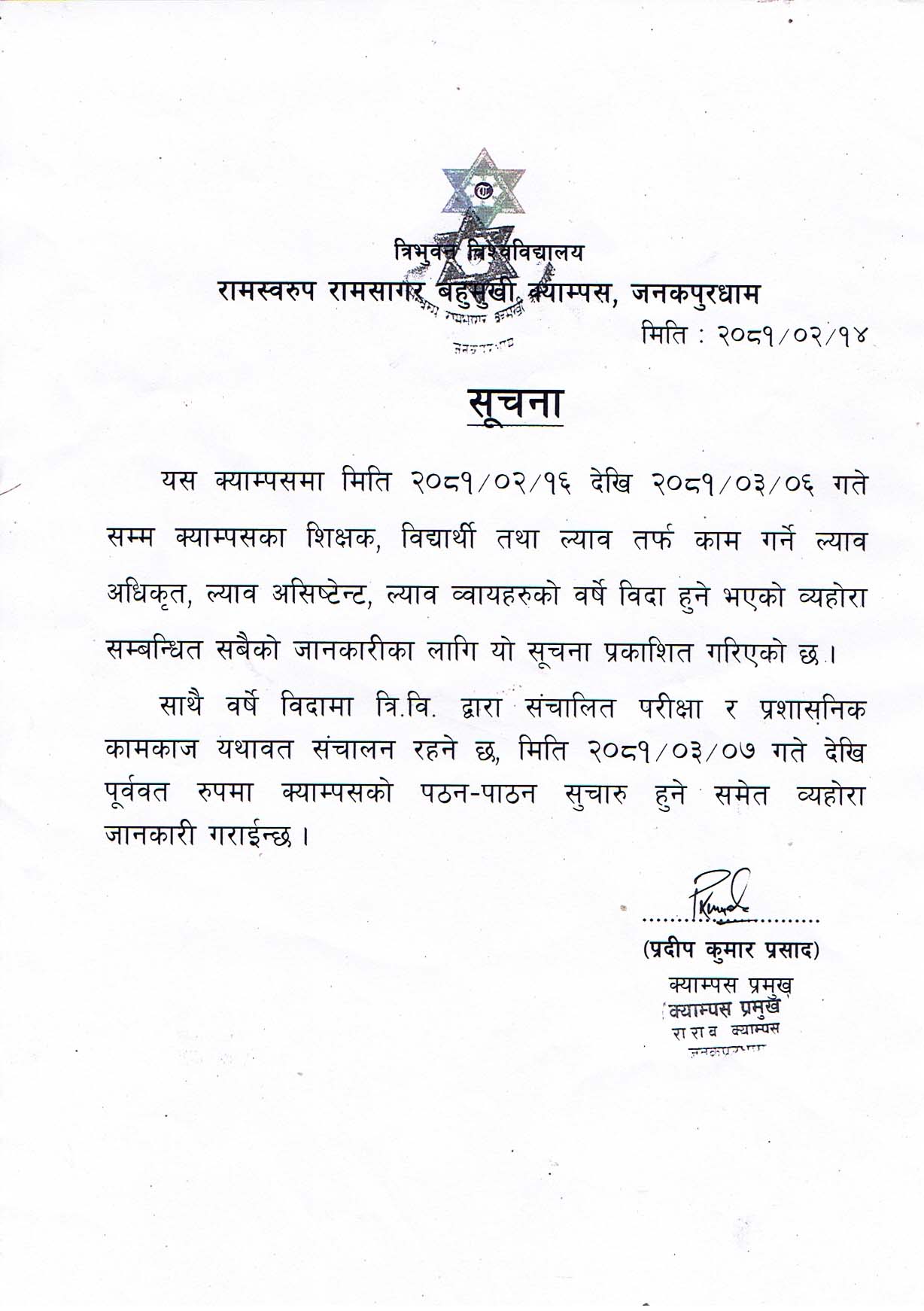 गर्मी विदा/वर्षे विदा सम्बन्धि सूचना ।