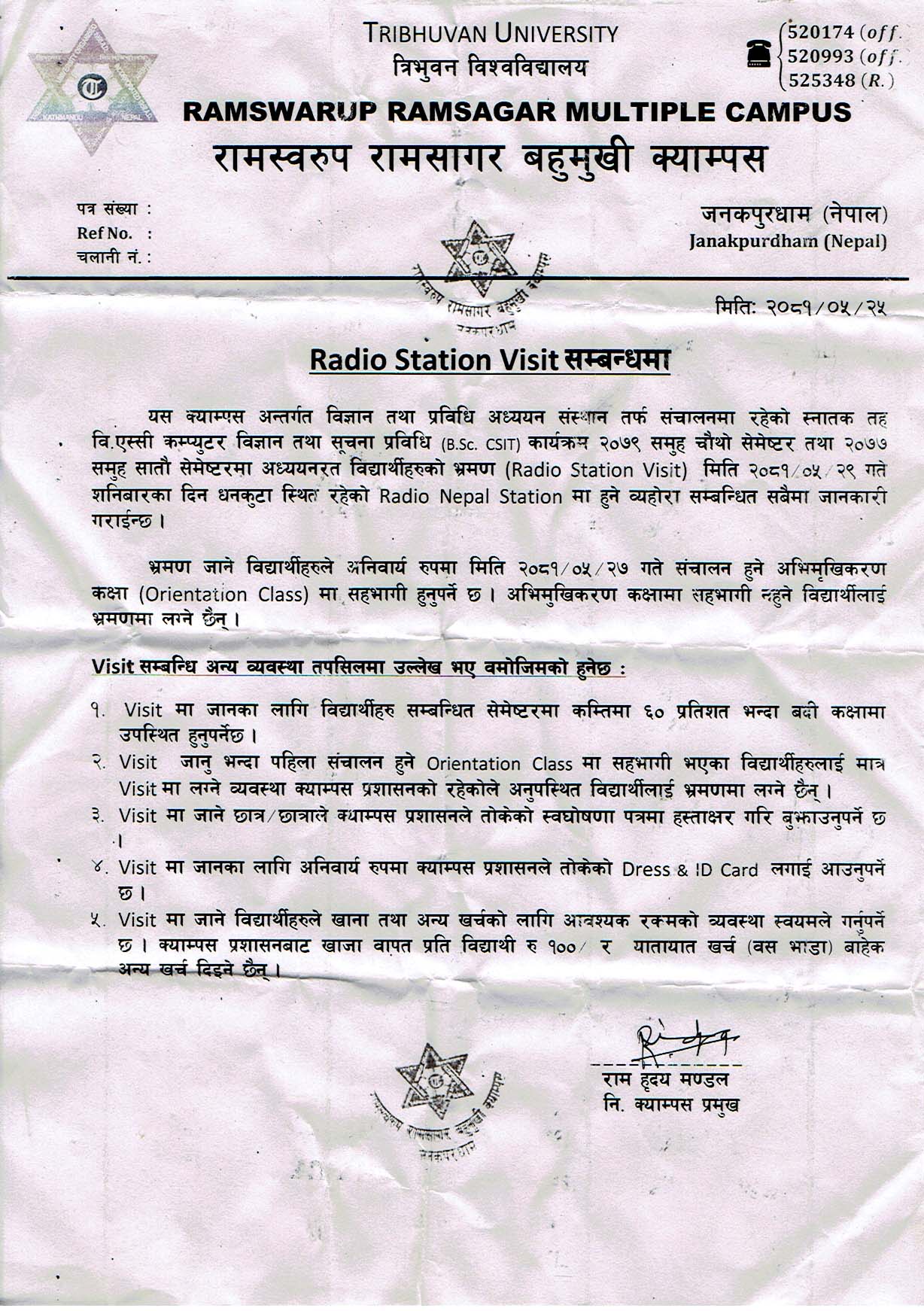 B.Sc. CSIT 4th and 7th Semester को Visit सम्बन्धमा ।