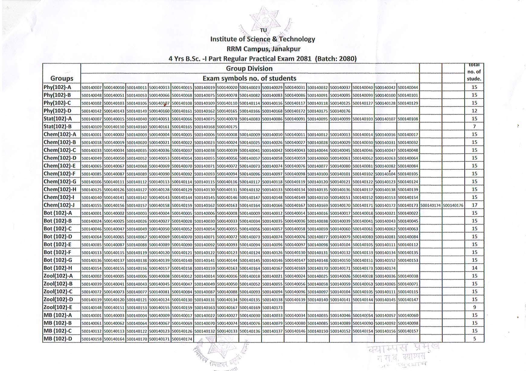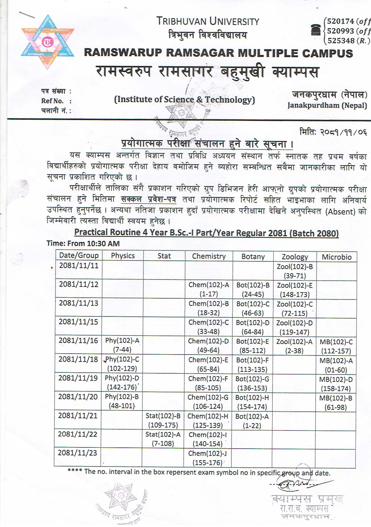 B.Sc. - I Part काे Practical Examination संचालन सम्बन्धी सूचना ।