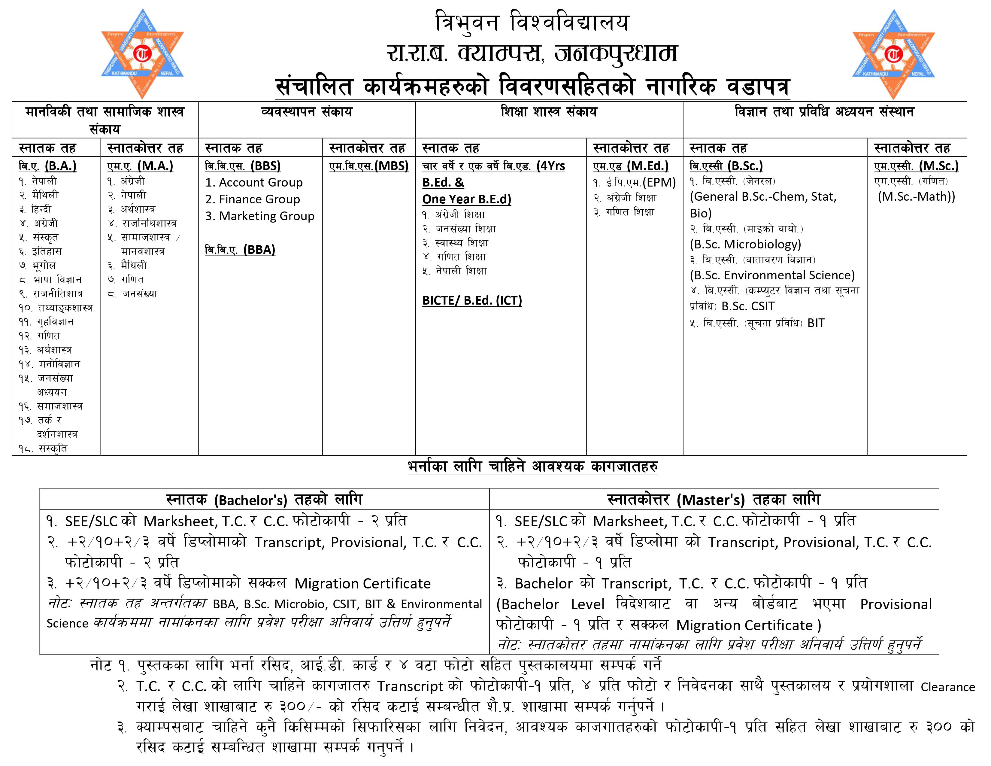३ वर्षे स्नातक तह वि. एस्सी. दोश्रो तथा प्रथम खण्डको मौका परीक्षा फारम सम्बन्धमा